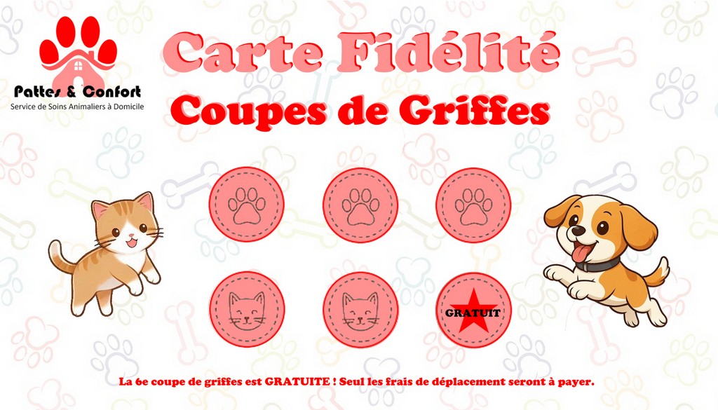 - Et la 6e coupe de griffes est GRATUITE ! (Seuls les frais de déplacement s’appliquent.)